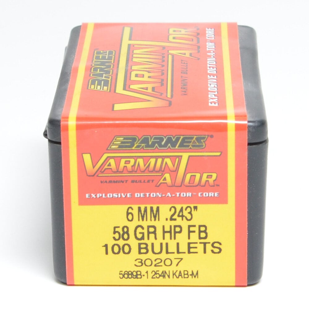 Barnes .243 Diameter 58 Grain Flat Base Hollow Point Varminator 100 Count Bullets