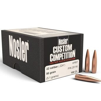 Nosler .224 Diameter 80 Grain Boat Tail Hollow Point Custom Competition Bullets