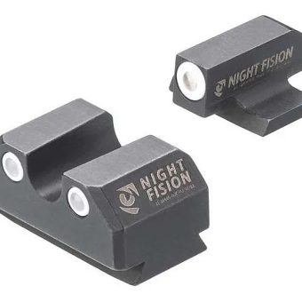 Night Fision Cost Ludus Night Sight Set Glock 17/19/34 White Front Horizontal Tritium Bar Rear Black Nitride