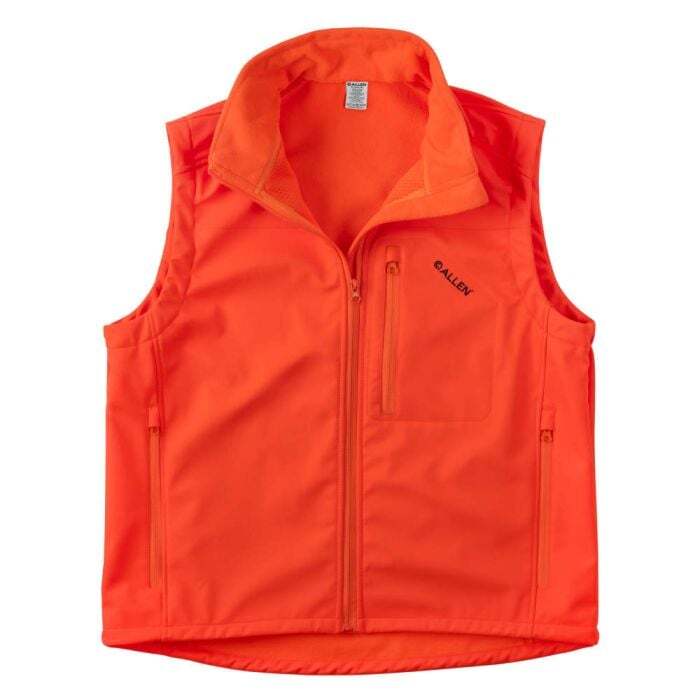 Redefining how a vest performs on active outdoor pursuits, Allen’s Softshell Blaze Hunting Vest does just that. The Allen Company Softshell Hunting Vest is highly adaptable for expeditions for any hunting season. What makes this hunting vest versatile for any hunting season? Its performance. The softshell hunting vest is precisely engineered to optimize comfort and mobility. The outer shell is made of a soft fabric that helps repel light rain and snow, preventing the face fabric from dampening and inhibiting movement. Built to retain warmth yet breathe when you need it the most; the side pockets open with a mesh material for ventilation. The interior is lined with a soft brushed fleece liner for warmth and comfortability. Each pocket is lined with zippers that lie flat to avoid catching on your gun. Features a bungee cinch waist cord in the hem, made to adjust to your desired fit. The Blaze Hunting Vest is sized to fit an adult man, sized 2XL.