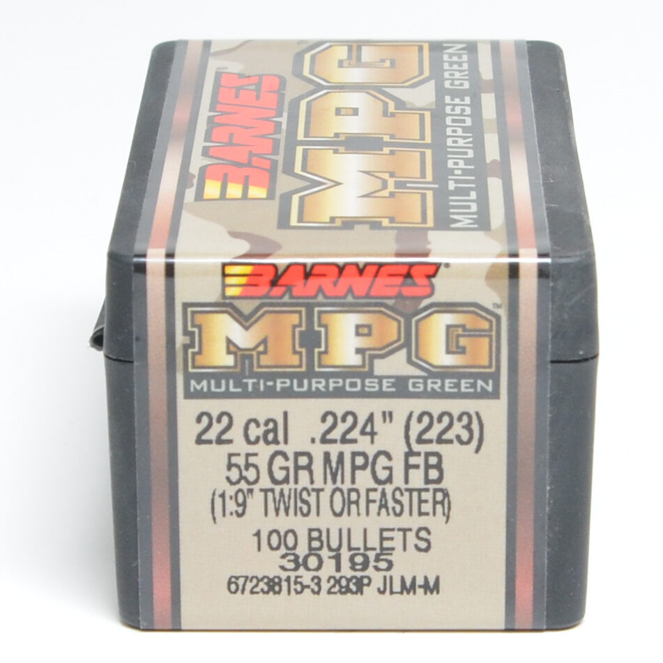 Barnes .224 Diameter 55 Grain Flat Base Hollow Point MPG 100 Count Bullets
