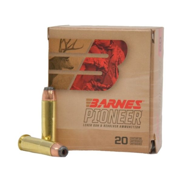 Bring your lever gun out of retirement—it’s time to experience the superior on-game performance of Barnes Pioneer ammunition. Designed specifically for lever guns and revolvers, this ammo is carefully loaded for terminal performance and delivers massive expansion and weight retention for deeper penetration. Each round is engineered for flawless feeding and cycling from tubular magazine to chamber for lightning-fast follow-up shots.