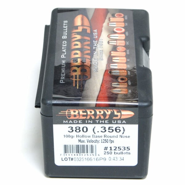 Berry’s .356 Diameter 100 Grain Hollow Base Round Nose 250 Count Bullets (380 ACP)