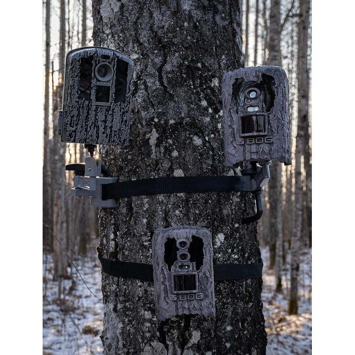 BOG camera lineup, BOG is introducing a full assortment of game camera accessories. The Ratchet Game Camera Mount gives hunters the ability to mount their cameras without damaging trees. The mini ball head allows the camera to be angled at nearly angle to capture that perfect image.