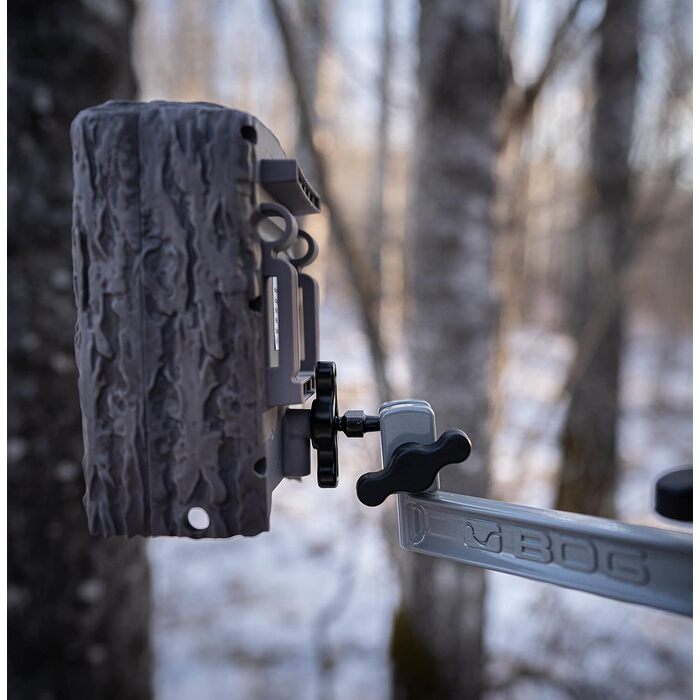 BOG camera lineup, BOG is introducing a full assortment of game camera accessories. The Step-In Game Camera Mount is the perfect mount for open field coverage. Simply step the tapered legs into the ground, secure the camera on the mini ball head and get shots of deer that would normally go undetected.