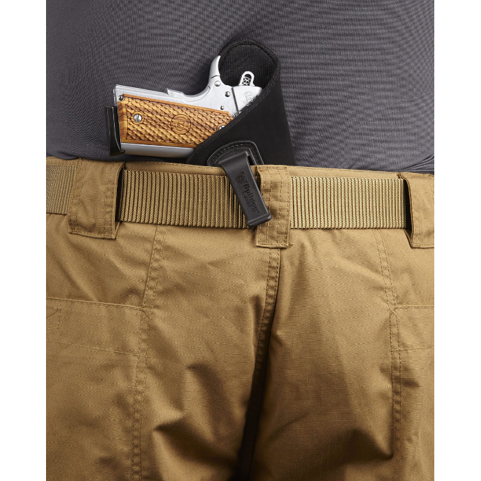 Bulldog’s Deluxe Inside the Waistband Holsters offer a uniquely fused padding and vapor barrier that help keep the weapon dry and protect the skin from the pistol’s curves and sharp edges. This holster features a special spiral binding that minimizes discomfort when worn directly against the skin. The smooth inner lining offers a snag-free draw while the suede-like outer material is comfortable and itch free. Its molded polymer clip can be worn over the pant top or belt. Fits 2-2.50 revolvers.