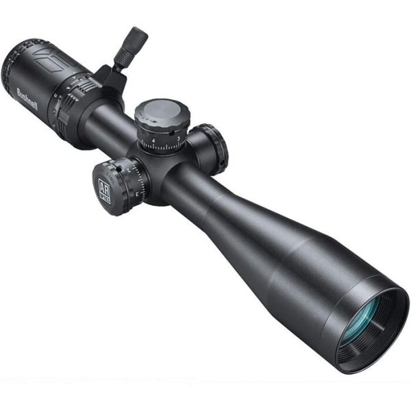 Bushnell AR Optic 1-4×24 Riflescope features fully multi-coated elements for a bright, sharp image, a maximum 112′ field of view, 1/10 MRAD impact point correction, and generous elevation and windage adjustment ranges. Its Drop Zone 223 reticle is calibrated for .223/5.56 ammunition with 55-62 grain bullets and has holdover marks out to 600 yards. The 30mm, one-piece aluminum housing is waterproof and shock resistant, with 3.5″ of eye relief. The adjustable-length Throw Down PCL zoom lever allows for rapid response to changing circumstances. Wet weather won’t keep it out of the field—the 1-4×24 AR Optics is IPX7-rated waterproof.
