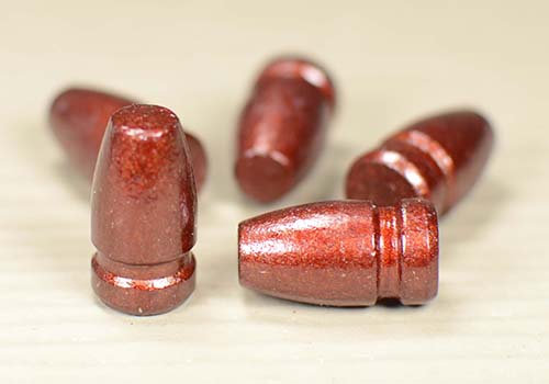 For these bullets, we use the unique heat-set “HI-TEK Super Coating”. The Coating Totally encapsulates the lead projectiles and replaces standard wax lube. Our bullets are Hard Cast at 16- 18 Brinell. We Use 92% lead / 6% Antimony /2% Tin for casting all Range and Cowboy Action bullets.