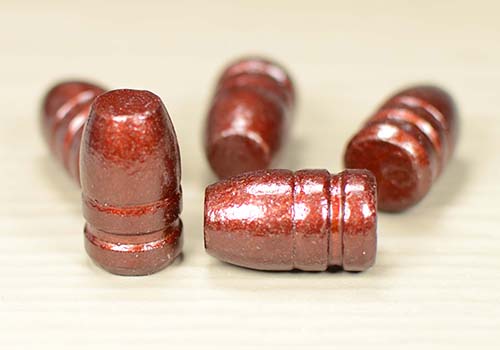 For these bullets, we use the unique heat-set “HI-TEK Super Coating”. The Coating Totally encapsulates the lead projectiles and replaces standard wax lube. Our bullets are Hard Cast at 16- 18 Brinell. We Use 92% lead / 6% Antimony /2% Tin for casting all Range and Cowboy Action bullets.