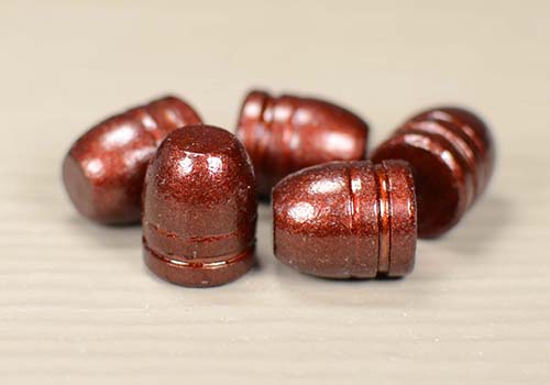 For these bullets, we use the unique heat-set “HI-TEK Super Coating”. The Coating Totally encapsulates the lead projectiles and replaces standard wax lube. Our bullets are Hard Cast at 16- 18 Brinell. We Use 92% lead / 6% Antimony /2% Tin for casting all Range and Cowboy Action bullets.