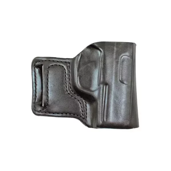 The DeSantis E-Gat Slide is a basic neutral cant concealment holster that works equally well on the strong side or cross draw. Constructed of finished top grain leather;the E-Gat both looks nice and is very durable.