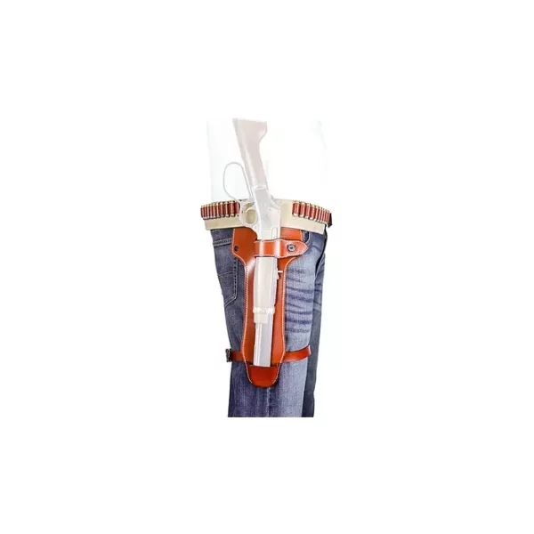 Originally designed to carry the Mare’s Leg rifle;this DeSantis Premium Western Rig will carry your Henry;Rossi;Winchester Randall or Chiappa Mare’s Leg rifles with comfort and security. Its clever design is adjustable for both right- and left-hand carry. It’s built from a combination of premium Saddle leather and Center Cut steer hide. The 20 cartridge holders are for 44/45 caliber and are also available for .22/.22magnum (covered pouches for .22 magnum/.22lr. Fits belts to 1 ¾” max.