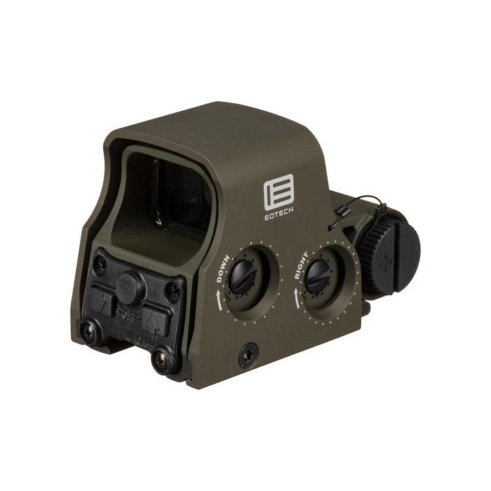 The OD green EOTech Model XPS2 Holographic Weapon Sight is built to conserve valuable rail space while enabling rapid both-eyes-open sighting and tracking in a variety of conditions. This model’s reticle (with red laser illumination) features a 68 MOA outer ring with quadrant stadia and a 1 MOA center aiming dot. To get users on target faster, impact point correction is made at 0.5 MOA per click with a total windage and elevation adjustment range of 40 MOA to compensate for most terrain and conditions. The XPS2 measures just 3.8″ and weighs a mere 9 oz. It has an integrated Picatinny/Weaver rail mount, is submersible to 10′, and is internally fog resistant. It runs on a single CR123 battery with a continuous runtime of about 600 hours at a medium setting, with 20 selectable intensity levels for use in most lighting conditions.