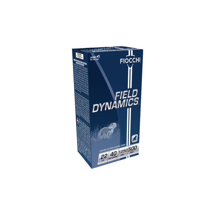 Small game hunting and silhouette shooting are BACK, and Fiocchi helps you get the most out of your field and range adventures with bulk-quantity Field Dynamics .22LR cartridges. Offered in 40- and 38-grain bullet weights, Field Dynamics .22LR is available in copper-plated round nose and copper-plated hollow point for optimal terminal performance on small game and varmints. For a more discrete noise signature, check out our subsonic .22LR hollow point.