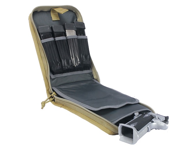 Case features 4 magazine storage pockets, 1000 Denier heavy-duty material w/DuPont Teflon coating & YKK Brand oversized self tracking zippers. Fits the Tactical Range Backpack compartment. Mix & match the case colors for specific handguns