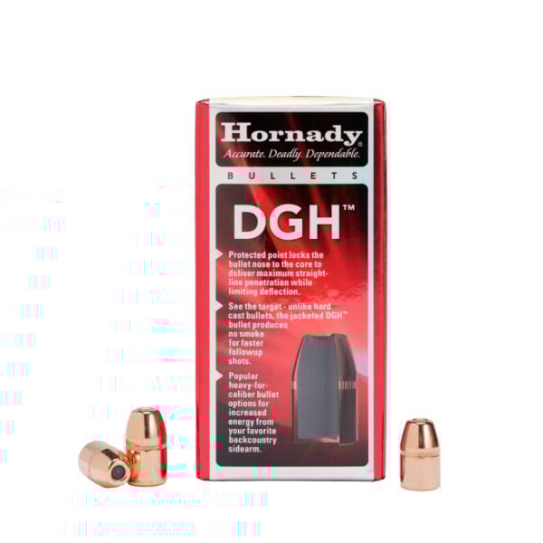 When a moment in the wild can mean the difference between walking away and not, trust the bullet designed for those worst‑case encounters. The Dangerous Game Handgun™ (DGH™) is a jacketed, heavy‑for‑caliber projectile engineered to punch through tough barriers, resist deflection, and deliver maximum penetration.