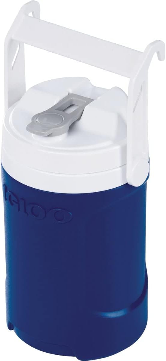 Igloo’s reusable beverage 0.5 gallon bottle keeps drinks colder for longer while providing convenience with its wide opening and sturdy swing-up handle.