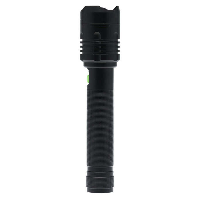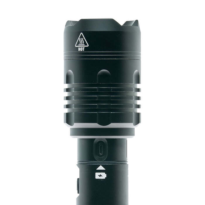 The Kodiak Kiran tactical flashlight produces up to a stunning 10,000 max lumens of light. Aerospace grade aluminum construction ensures dependable performance whenever it’s used. The Kodiak Kiran is rechargeable so there’s no need to constantly be changing batteries. A convenient charging level indicator alerts you when a recharge is needed. The flashlight is powered by a 5000 mAh rechargeable 26650 lithium battery. Charge your mobile phone on the go! Just plug your phone into the USB port on the flashlight. No need to worry about not being able to make an important call. The Kodiak Kiran features 3 brightness settings of 10,000, 2500 and 200 max lumens of light. Expect up to 2.5 hours of continuous light on high, 4.5 hours on medium and 23 hours on low settings. A full charge can take up to 9 hours. The flashlight measures 11.25″L x 2.25″D (Head) 2.0″ (Body) and weighs 2 lbs.