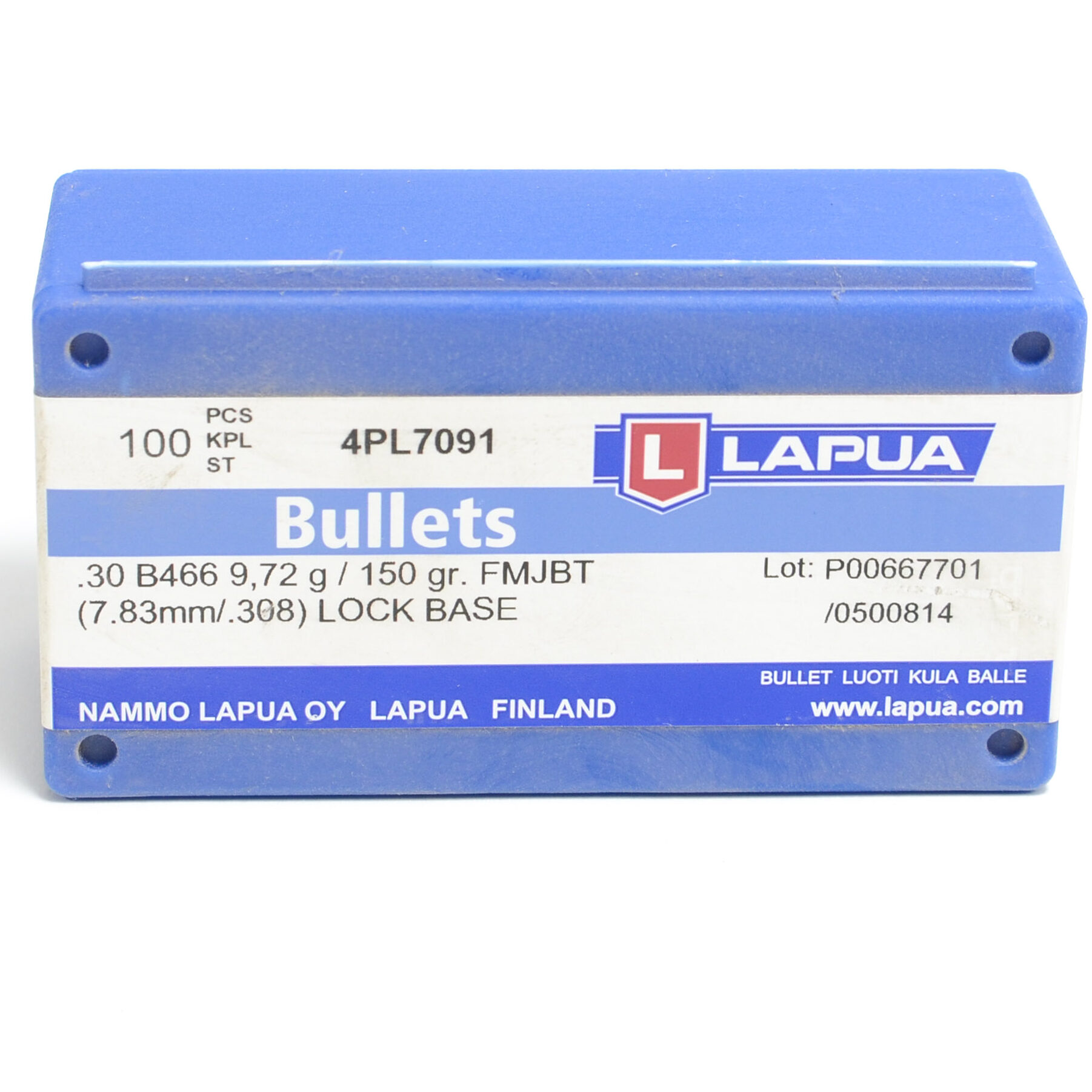 Lapua .308 / 30 150 Grain Full Metal Jacket Boat Tail Lock Base is a Lapua innovation combining a full metal jacket and boat tail. Great for mid to long range and bench rest shooting with proven results in competition, military and law enforcement.