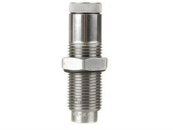 Incorporates a collet to apply a rifle type crimp to the case. Makes even the most difficult to crimp cartridges a delight to reload. Bullets do not need a crimp groove, as the collet is so powerful it will form one. A firm crimp improves accuracy because pressure must build to a higher level before the bullet begins to move. This higher start pressure insures a more uniform pressure curve and less velocity variation. NOTE: This die is not carbide.