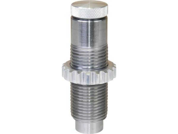 Incorporates a collet to apply a rifle type crimp to the case. Makes even the most difficult to crimp cartridges a delight to reload. Bullets do not need a crimp groove, as the collet is so powerful it will form one. A firm crimp improves accuracy because pressure must build to a higher level before the bullet begins to move. This higher start pressure insures a more uniform pressure curve and less velocity variation. NOTE: This die is not carbide.