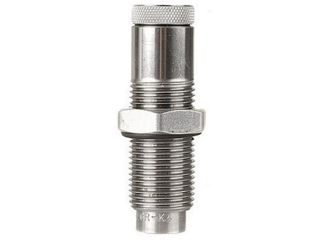 Incorporates a collet to apply a rifle type crimp to the case. Makes even the most difficult to crimp cartridges a delight to reload. Bullets do not need a crimp groove, as the collet is so powerful it will form one. A firm crimp improves accuracy because pressure must build to a higher level before the bullet begins to move. This higher start pressure insures a more uniform pressure curve and less velocity variation. NOTE: This die is not carbide.