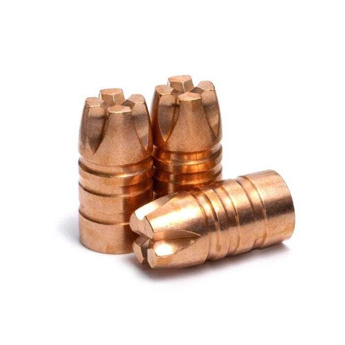 The progressive nose geometry of this bullet allows for deep, straight penetration while creating a permanent wound cavity diameter exceeding that of most expanding bullets. This bullet is optimal for use in .44 Magnum and .44 Special loads.