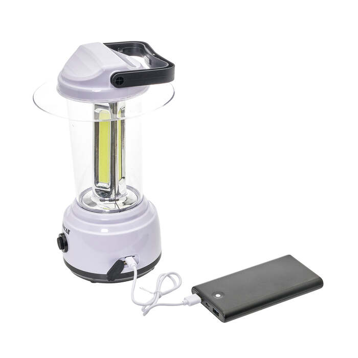 An incredibly bright rechargeable lantern from LitezAll. 5 brightness modes from 50 to a max 3500 lumens are easily selectable from the front mounted power button. In the 50 lumen “night light” mode, expect up to 120 hours of continuous runtime. That’s over 4 days of continuous light! The lantern is very attractive and manufactured from tough white ABS plastic with a clear light reflector. The integrated carry handle also includes a retractable hanging hook! This lantern is powered by a 6400mAh, 3.7v 18650 lithium battery that also functions as a power bank to charge your smartphone.