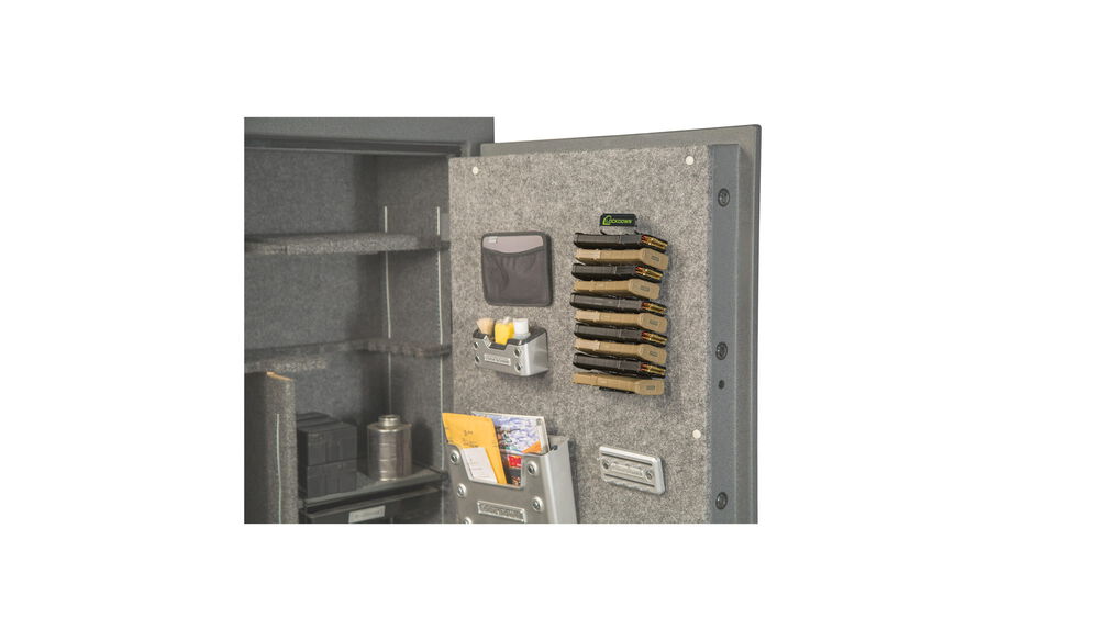 The Lockdown Magazine Rack is ideal for keeping AR-15 magazines organized. It conveniently holds up to 10 magazines either loaded or unloaded. It is designed to stand upright on a shelf or any flat surface or it can easily be mounted to a wall or vault door. It is compatible with both mil-spec and polymer mags. Holds any “in line” magazine from 10 round up to 30 round. The vinyl coated steel structure is durable and won’t scratch or mar surface finishes.