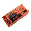 Covers 380 Auto, 9mm Luger, 38 Special, 357 Magnum, 40 S&W, 45 ACP and 45 Colt calibers. The handle features a rotating attachment point for the rod, which allows the rod to rotate and follow the rifling in your barrel. All the components are packed in a convenient plastic carrying case. Cleaning Kit Includes: – 3 Bronze Brushes – 3 Brass Jags – 3 Mops – 1 Slotted Patch Holder – 1 Cleaningh Rod Handle – 1 Rod Centering Guide – 1 Bg of Patches – 1 Bottle of Gun OIl – 2 Brass Cleaning Rods (5 1/2″ Rod and 2″ Extension)