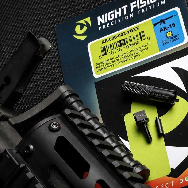 The Night Fision Night Sight Front Sight Post features a narrower Perfect Dot with Green Tritium and a colored ring to draw the eye. This thinner version of the previous Front Sight Post gives you all the iron sight you need with less material to disrupt your sight picture. Fits Standard AR-15 & AR-10 Rifles that were originally equipped with factory adjustable sights. Custom installation tool included.