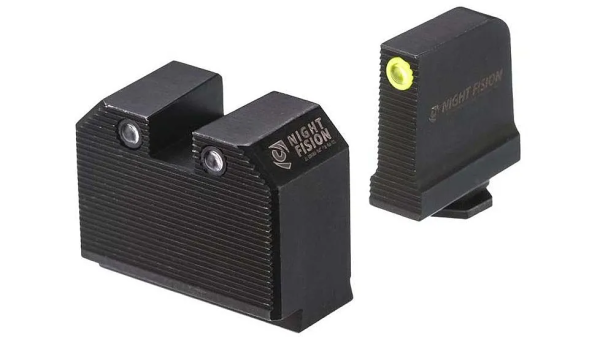 Night Fision night sights offer a revolutionary new design that with brighter, more vivid, aiming dots. Like all night sights, Night Fision uses self-illuminating Tritium to get the ”always on” glow that makes them so effective. Night Fision sights have 30% more Tritium than most sights on the market. The Tritium insert isnt surrounded by a painted-on ring, but rather one made of a daylight fluorescing material that produces optimum visibility in daylight.