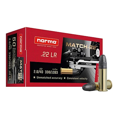 Norma Ammunition 22 Long Rifle 40 Grain Lead Round Nose 50 Count
