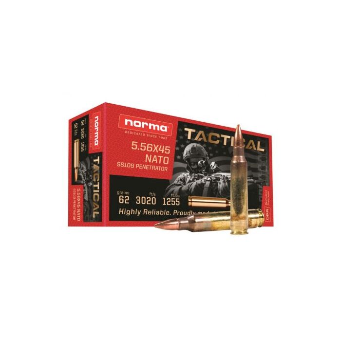 Norma Ammunition 5.56x45mm NATO 62 Grain Full Metal Jacket 50 Count