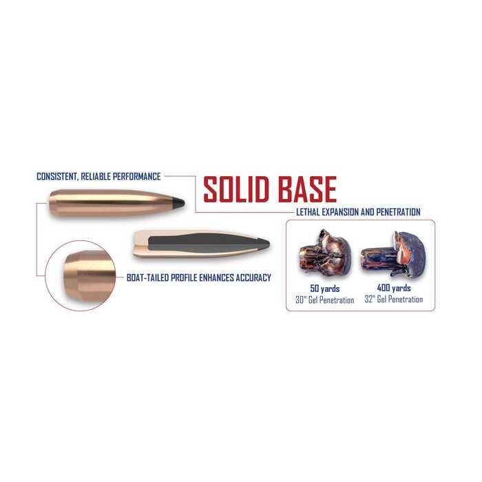 Nosler’s Whitetail Country™ ammunition, loaded with the legendary Solid Base® bullet, is crafted with decades of hunting expertise and engineered specifically for deer. The Solid Base® bullet, renowned for its accuracy and terminal performance, features a fifth-generation tapered jacket and heavy solid base for deep penetration and optimal expansion, ensuring quick, effective kills. The bullet’s boat-tail design and sleek profile ensures superior accuracy and wind resistance, making Whitetail Country™ ammunition the ideal choice for deer hunters.