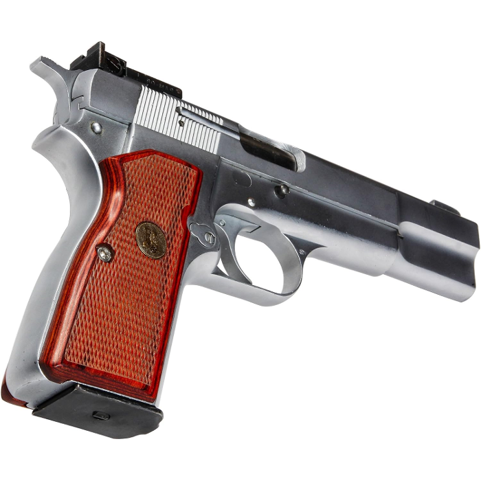 Pachmayr Pistol Grips Browning Hi-Power (A-Frames) are designed to complement Browning’s superb fit, feel and function. These Browning Hi-Power Grips from Pachmayr are made to provide excellent grip security in all hand sizes for consistent weapon performance. These Pachmayr Grips Browning Hi-Power Pistols provide high-quality look and feel, so you get a perfect feel for your firearm. When you need a Browning Hi-Power Pistol Grip, installation is easy! Just wrap the rear stub with one of the Browning Hi-Power Grip straps and place the new grip anywhere on the firearm – foregrip, magazine housing or frame. There’s no need to wrap anything around your hand – the grip stays where you put it!image