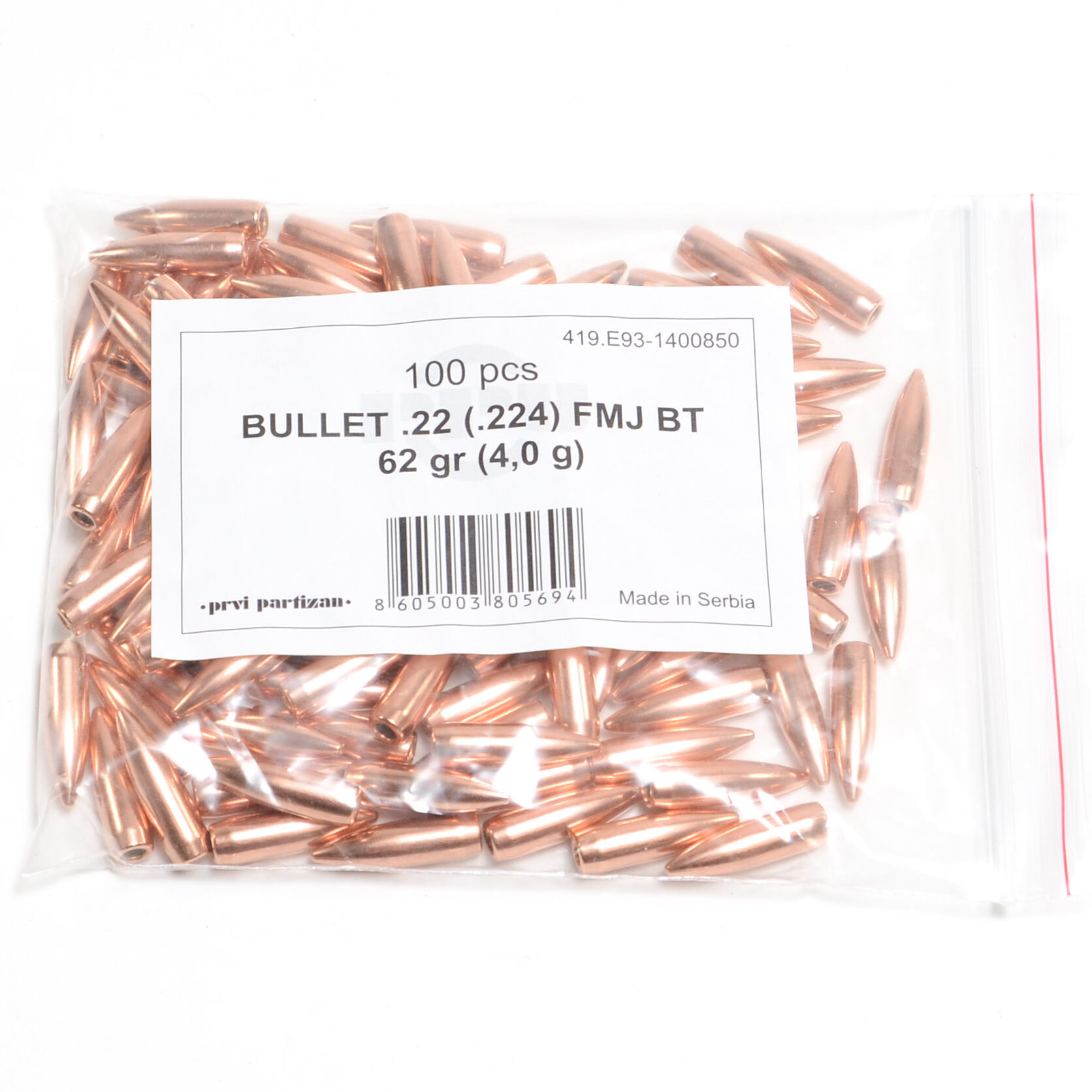 Prvi Partizan .224 Diameter 62 Grain Full Metal Jacket 100 Count Bullets
