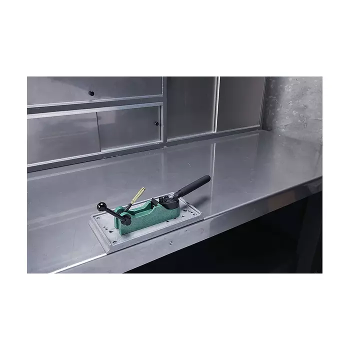 The RCBS Bench Mounted Primer Pocket Swager is a dedicated bench mounted tool that makes the removal of primer pocket crimps a simple task. This rugged tool requires 35 percent less force than other tools on the market to complete the same task. A hardened steel rod supports the case from the inside allowing the case to float for perfect alignment with the hardened steel swager head. All a reloader has to do is rotate the case down into position and with a pull and push of the handle, the job is done.