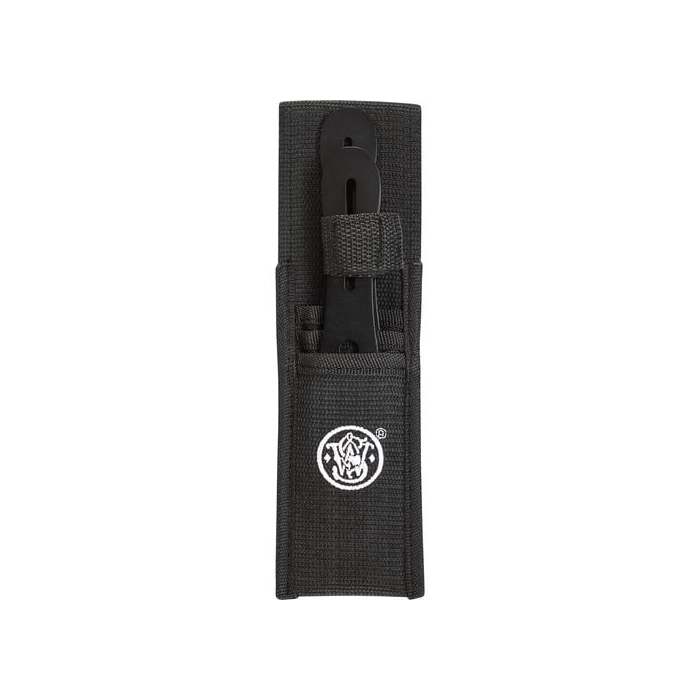 This Smith & Wesson Bullseye pack is a set of three throwing knives, measuring 8″ each and crafted from black finished 2Cr13 stainless steel. Comes with nylon sheath and slots for each knife.