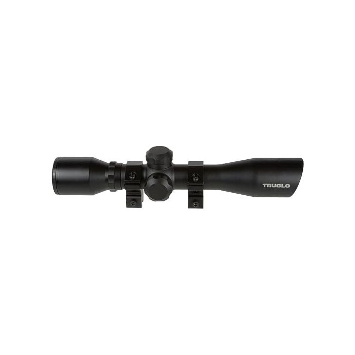 Take aim with the Truglo 4 x 32 Compact Riflescope, which features fully multicoated optics and waterproof, fog-proof construction to ensure a bright, clear view, even during harsh conditions in the field. This versatile scope has an aircraft-grade aluminum tube with a scratch-resistant, non-reflective matte finish that’s sure to deliver years of reliable service for every avid hunter or shooter.Designed for most rimfire rifles, shotguns, and Picatinny rails, the riflescope’s duplex reticle helps you line up your shot. Upgrade your shooting performance with a compact yet effective 4 x 32 riflescope by TruGlo. Includes a lens cover and 3/8 rings for rimfire and air rifles.