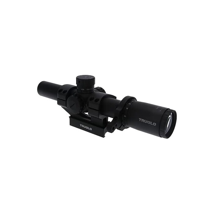 TRUGLO TRU-Brite 30 Series Dual-Color Illuminated-Reticle Scope with Mount offers the perfect combination of clarity, precision, and speed. Featuring a 30mm tube and 1-6x magnification, TRU-BRITE 30 provides a bright image and an extremely wide field of view. With true 1x magnification, shooters can utilize an extremely fast-sight picture and even take the shot with both eyes open. Combines our Duplex Mil-Dot reticle (Calibrated at 6x) with an illuminated Circle-Dot for quick acquisition in low light or at low magnification. MIL-DOT Reticle enables the user to determine the distance of objects of a known size and provides quick trajectory and wind drift aiming references (Calibrated at 6x magnification). Each TRU-BRITE 30 scope includes two pre-calibrated BDC turrets in calibers .233 (55 grain) and .308 (168 grain) to engage targets up to 800 yards away.