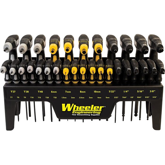 Complete your workbench with the Wheeler Engineering 30-Piece SAE/Metric Hex and Torx P-Handle Set. The sleek molded stand design paired with its ability to be mounted on the wall allow for quick, convenient access to the SAE hex, metric hex, and torx drivers.