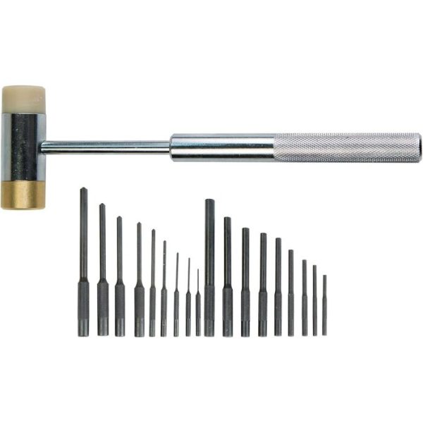Wheeler Master Roll Pin Punch Set with Brass and Nylon Hammer