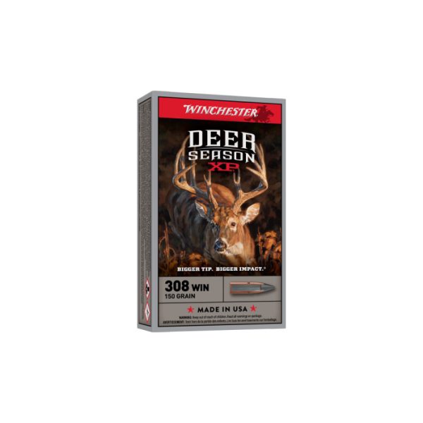 Deer Season XP ammunition combines extensive experience into a product engineered specifically for deer hunters. The Extreme Point bullet features an oversized impact diameter. The larger impact diameter means more impact trauma, better energy transfer and larger wound cavities for faster knockdown. Features of this bullet include a tapered jacket for lethal penetration, a streamlined ballistic profile for flat trajectory, energy retention and accuracy, as well as the large diameter polymer tip for rapid trauma.